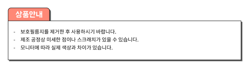 - 제품 특성상 단순 변심, 부주의에 의한 제품 손상 및 파손, 사용 및 개봉한 경우 교환/반품이 불가합니다.