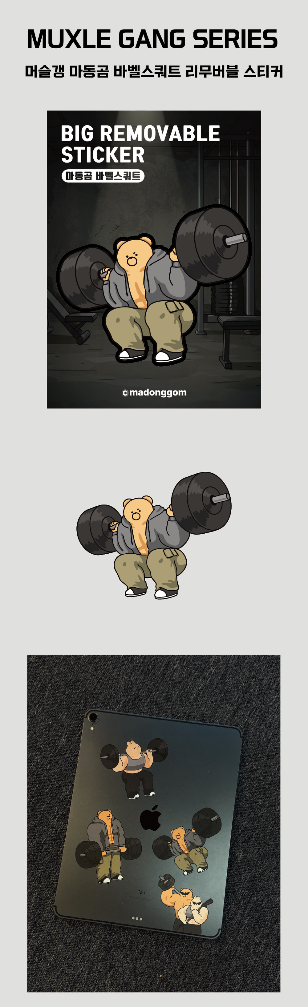 머슬갱 마동곰 바벨스쿼트 리무버블 스티커